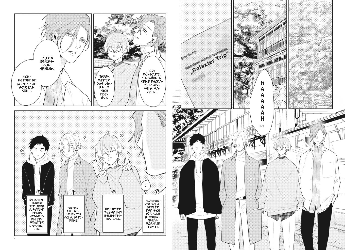 Shin steht für ein TV-Projekt mit Shige, Hanasaki und Tatara vor der Kamera. Doch er kann seinen Aufenthalt in dem schicken Onsen-Hotel nicht wirklich genießen. Neben der Arbeit beschäftigt ihn „Shiges Geheimnis“, von dem er bei einem Treffen mit Direktor Asakusa erfahren hat. Zunächst versucht er, seine Gefühle zu unterdrücken, und stürzt sich in die Arbeit. Doch dann beschließt er, Shige damit zu konfrontieren …