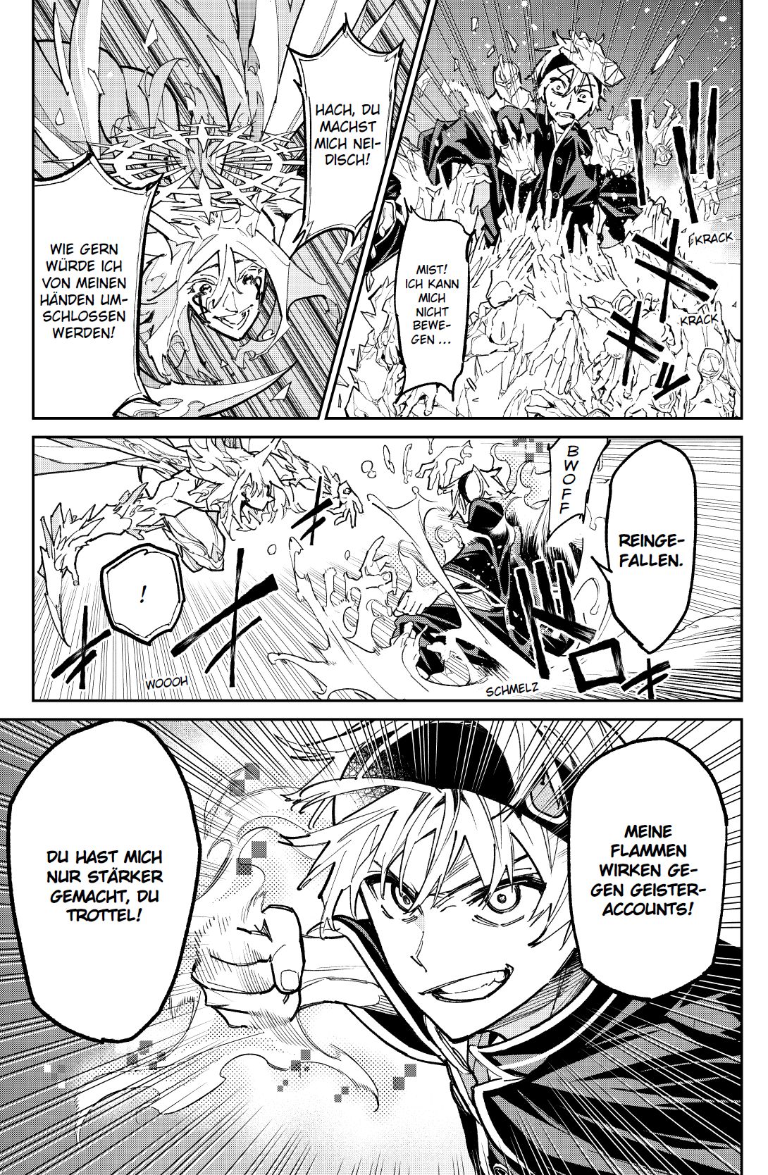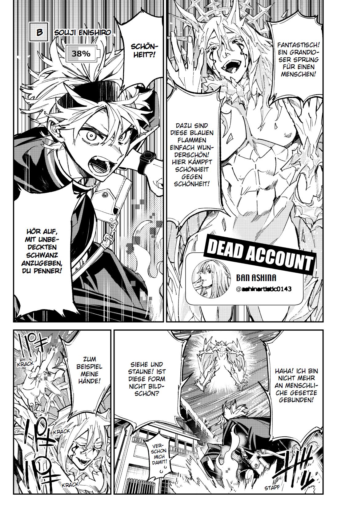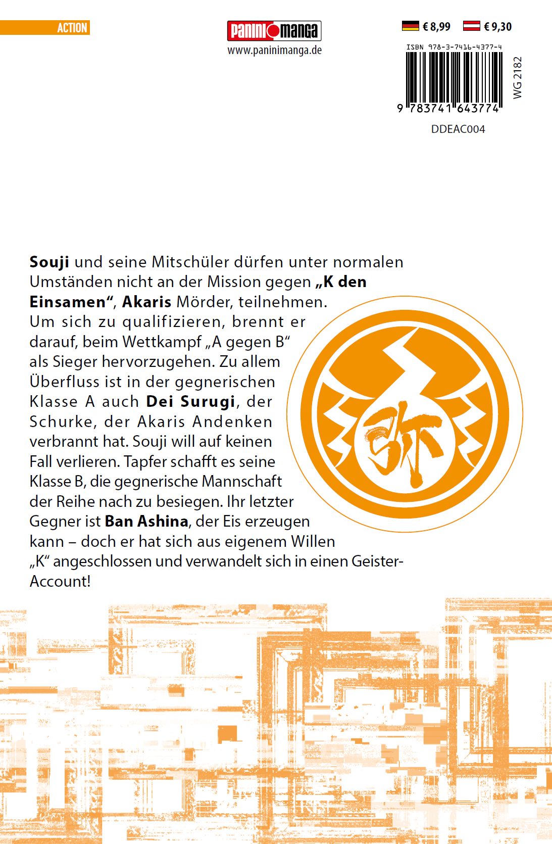 Die Geister von heute hausen in Smartphones! Vielleicht auch in deinem … Streitlustig und zerstörungsfreudig: Das ist der 15-jährige Souji Enishiro, besser bekannt als „Aoringo“, ein berüchtigter Streamer, der durch schockierende Videos Geld scheffelt. Für die Gesellschaft ist er die reinste Plage, aber in Wirklichkeit ist er ein herzensguter Junge, der seine Schwester Akari und Süßigkeiten über alles liebt. Seine Skandalvideos dienen nur dazu, die teuren Behandlungskosten seiner kranken Schwester zu decken. Solange sie gesund ist, ist Souji glücklich – selbst wenn die ganze Welt ihn hasst. Doch dann widerfährt Akari ein Unglück … Das erwartet dich in Band 4:Souji und seine Mitschüler dürfen unter normalen Umständen nicht an der Mission gegen „K den Einsamen“, Akaris Mörder, teilnehmen. Um sich zu qualifizieren, brennt er darauf, beim Wettkampf „A gegen B“ als Sieger hervorzugehen. Zu allem Überfluss ist in der gegnerischen Klasse A auch Dei Surugi, der Schurke, der Akaris Andenken verbrannt hat. Souji will auf keinen Fall verlieren. Tapfer schafft es seine Klasse B, die gegnerische Mannschaft der Reihe nach zu besiegen. Ihr letzter Gegner ist Ban Ashina, der Eis erzeugen kann – doch er hat sich aus eigenem Willen „K“ angeschlossen und verwandelt sich in einen Geister-Account!Die Mission lautet: Vertreibe die digitalen Geister in diesem Schul-Geister-Battle-Fantasy-Manga!