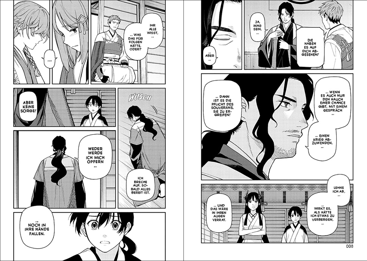 Endlich beschließt die befreundete Provinz Enami, dem vom Bürgerkrieg erschütterten Mizuho zu helfen. Isaza betritt erstmals wieder den Boden seiner Heimat und dank der beherzten Truppen Enamis und der übermenschlichen Kraft von Yachiho scheint ein Sieg zum Greifen nah. Doch im Verborgenen gedeihen bereits neue Intrigen: Feinde in den eigenen Reihen und alte Verschwörungen lassen Isazas Hoffnungen in weite Ferne rücken.