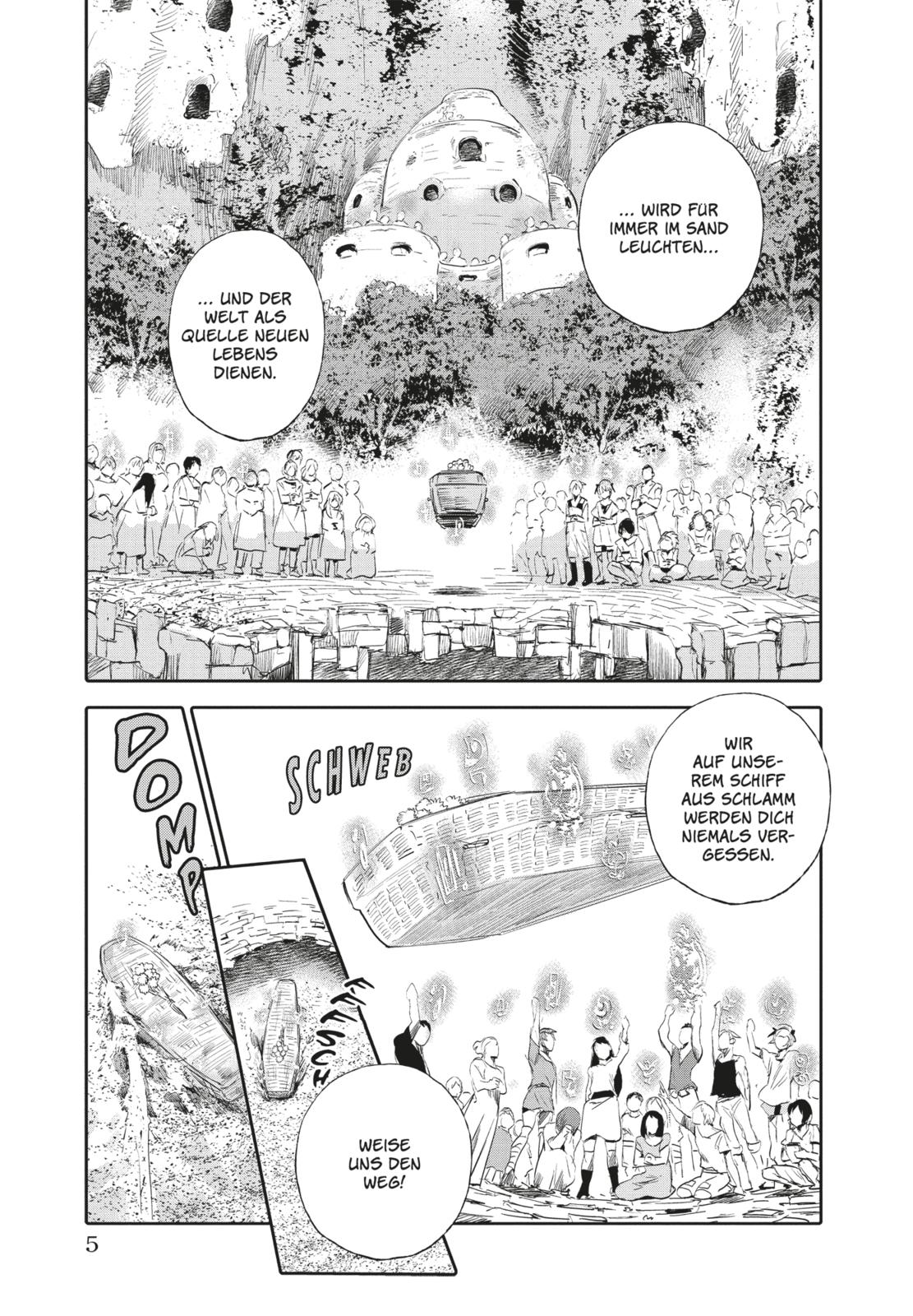 Eine Welt aus Sand – Die Bewohner des Schlammwals, einer riesigen Schiffsinsel, die über ein endlos weites Sandmeer treibt, können »Saimia« einsetzen. Das sind übernatürliche Fähigkeiten, die sich aus ihren Gefühlen nähren. Der Preis dafür: Die Leben dieser Menschen sind kurz. »Unser kurzes Leben müssen wir auf dem Schlammwal verbringen, einer von der Außenwelt gänzlich abgeschotteten Insel…« Der Junge Chakuro nimmt dieses Schicksal an, bis er eines Tages auf einer angeschwemmten Schiffsruine einem Mädchen begegnet…