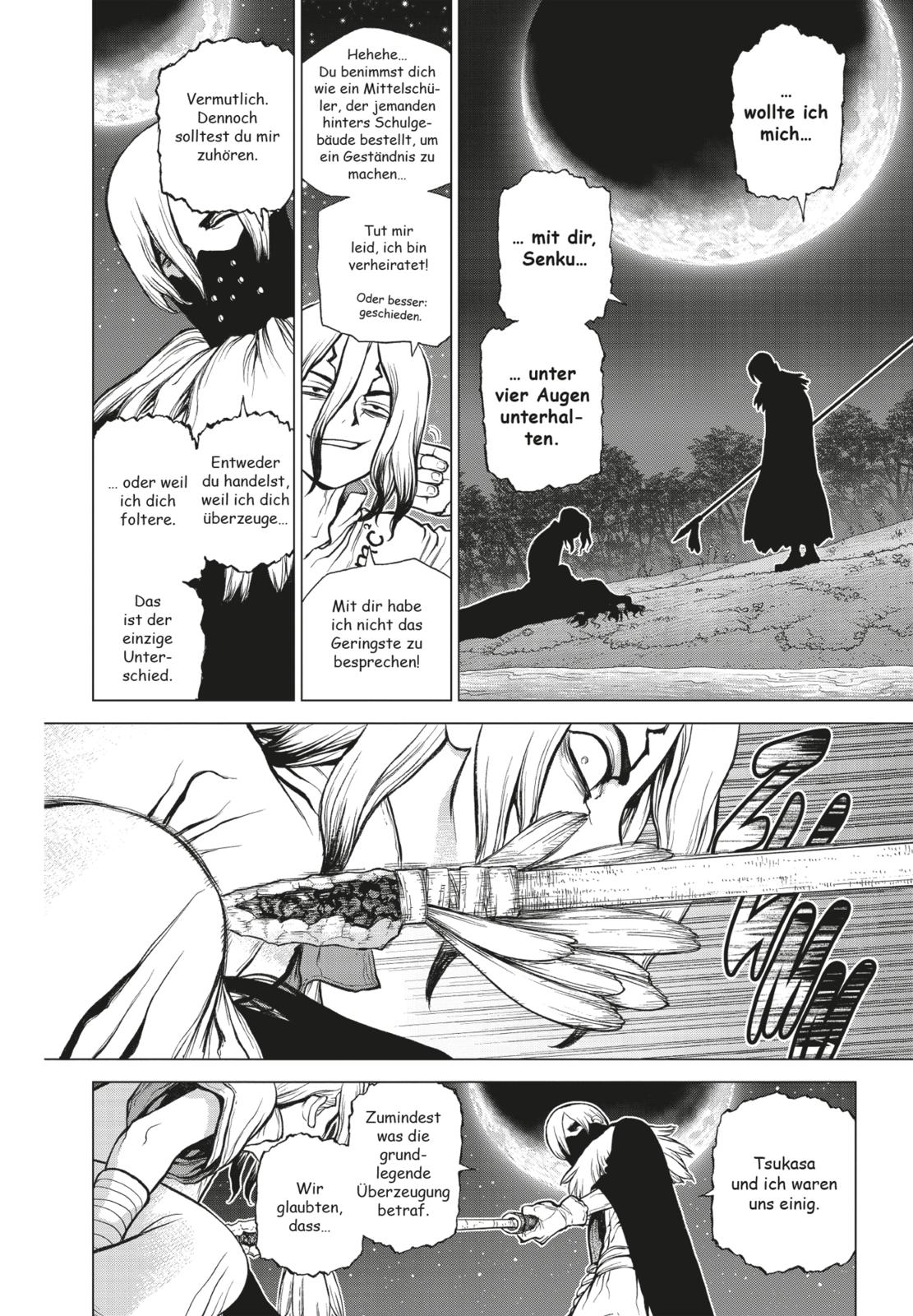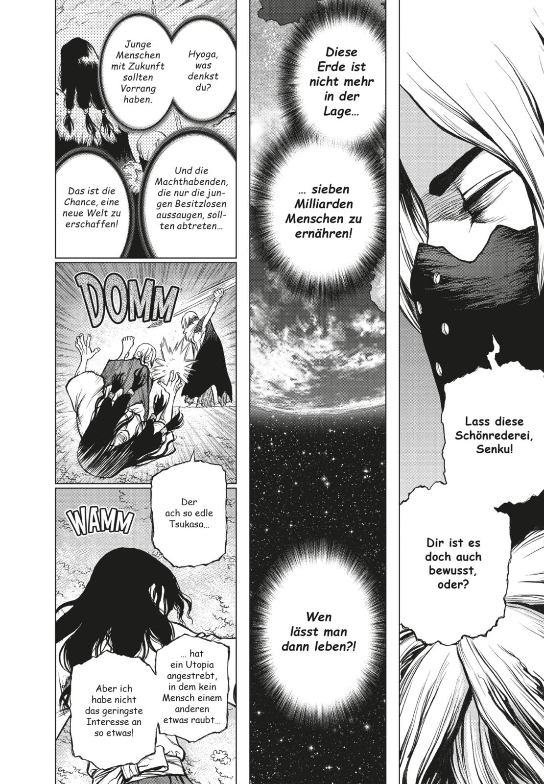 Als der Highschool-Schüler Taiju endlich den Mut aufbringt, Yuzuriha – das Mädchen seiner Träume – seine Liebe zu gestehen, wird der Himmel von einem Licht erfüllt, das alle Lebewesen, die es erreicht, zu Stein werden lässt. Nach Tausenden von Jahren in Stein kann er sich wie durch ein Wunder befreien und sucht nach weiteren Überlebenden. Bei seiner Suche trifft er auf seinen Freund und Wissenschaftsgenie Senku, der schon früher seinem Steingefängnis entkommen konnte.Gemeinsam versuchen sie die Weltbevölkerung zu retten und untersuchen, wie es zu diesem Ereignis gekommen ist. Bei ihrem Abenteuer treffen sie natürlich nicht nur auf Freunde…DR. STONE begeistert die Leser mit jeder Menge Action, Witz und Wissenschaft!
