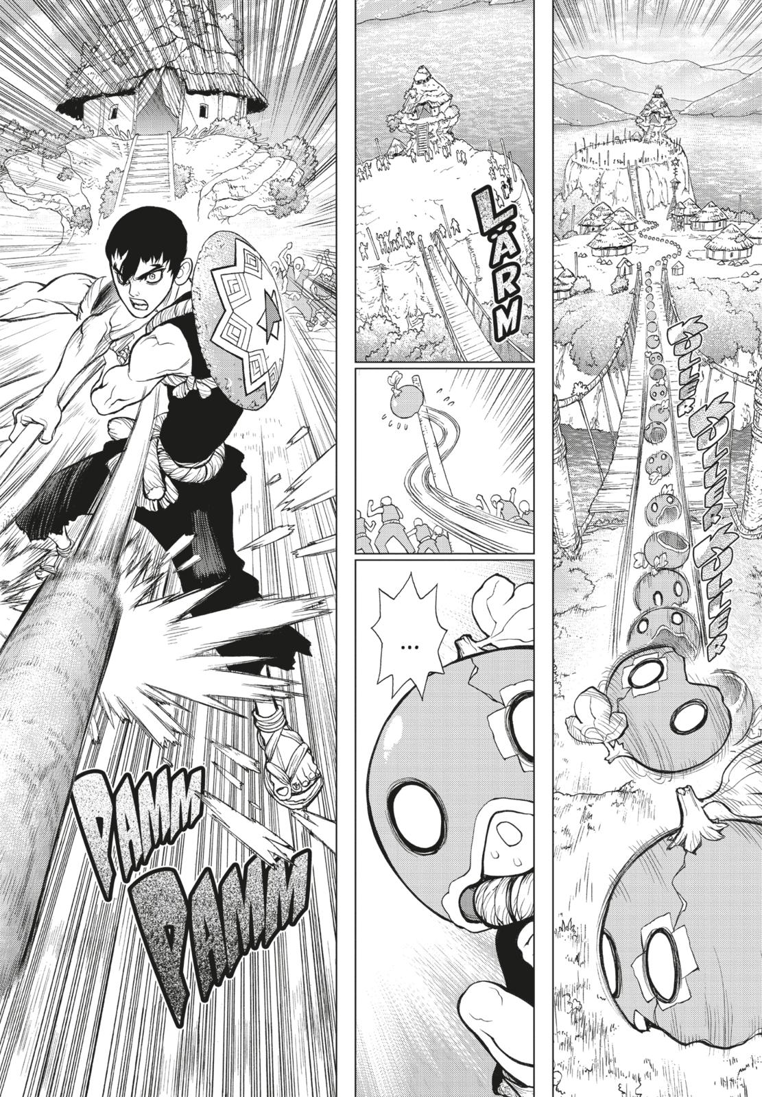 Als der Highschool-Schüler Taiju endlich den Mut aufbringt, Yuzuriha – das Mädchen seiner Träume – seine Liebe zu gestehen, wird der Himmel von einem Licht erfüllt, das alle Lebewesen, die es erreicht, zu Stein werden lässt. Nach Tausenden von Jahren in Stein kann er sich wie durch ein Wunder befreien und sucht nach weiteren Überlebenden. Bei seiner Suche trifft er auf seinen Freund und Wissenschaftsgenie Senku, der schon früher seinem Steingefängnis entkommen konnte.Gemeinsam versuchen sie die Weltbevölkerung zu retten und untersuchen, wie es zu diesem Ereignis gekommen ist. Bei ihrem Abenteuer treffen sie natürlich nicht nur auf Freunde…DR. STONE begeistert die Leser mit jeder Menge Action, Witz und Wissenschaft!