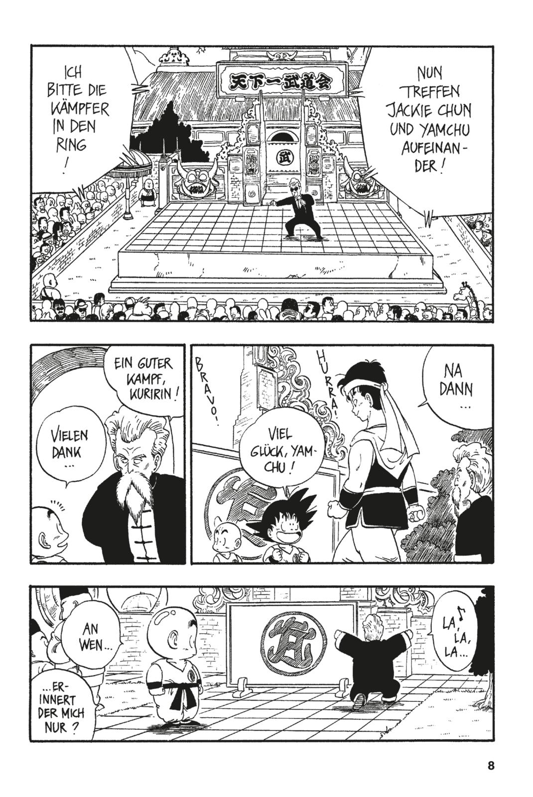 Nach ihrer Lehrzeit bei Muten-Roshi haben Son-Goku und sein neuer Freund Kuririn sich beim großen Kampfturnier angemeldet, bei dem sich alljährlich die Besten der Welt messen. Zu ihrer eigenen Überraschung haben beide die Finalrunde erreicht und stehen nun dem geheimnisvollen Jackie Chun gegenüber…