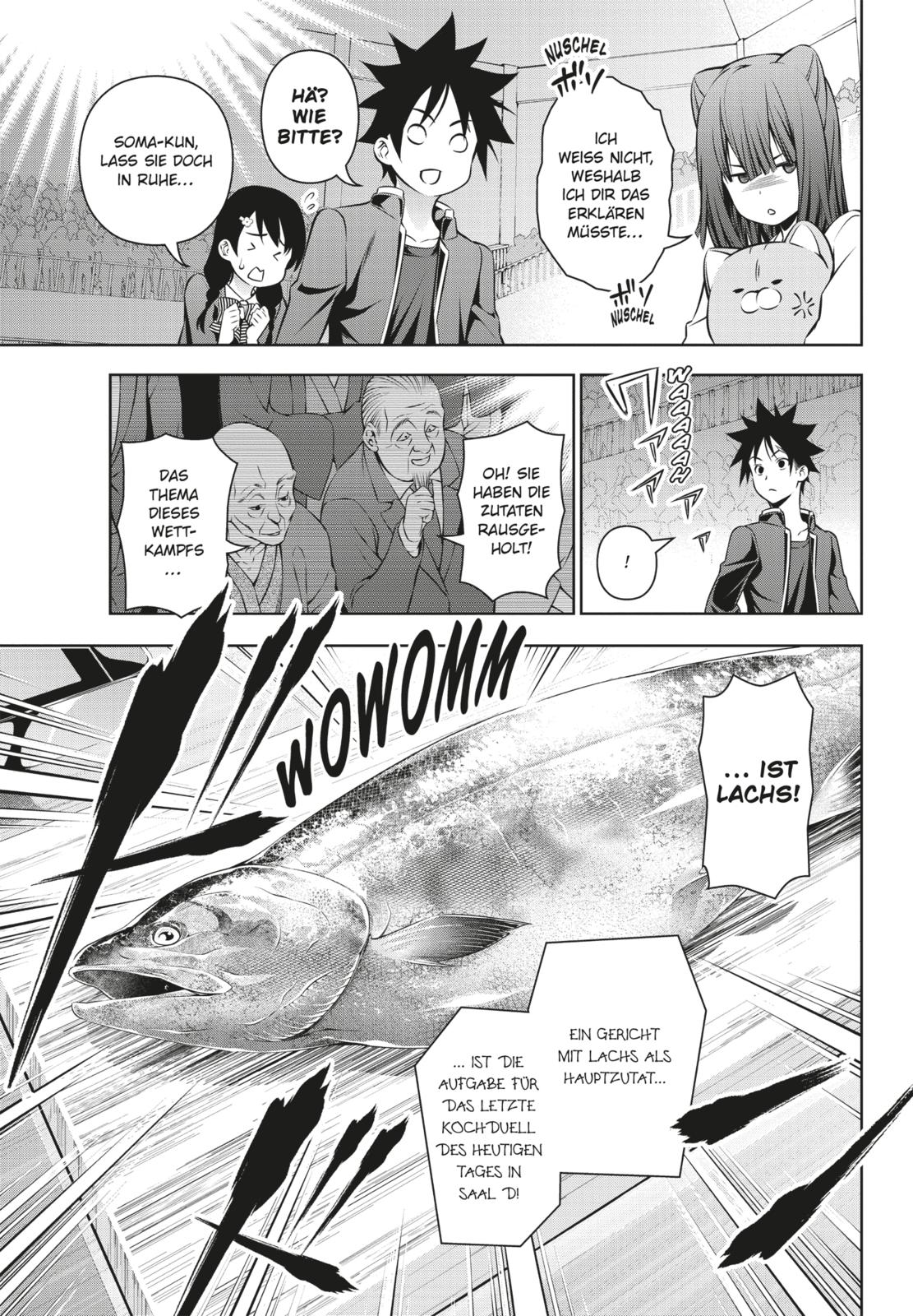 Die Kochplatten sind angeheizt für das Kräftemessen zwischen Polarsternkoch Kurokiba und Kusunoki von Central! Die Gegner brennen vor Stolz auf die Ehre des Sieges ? und beweisen doch Feingefühl bei der Zubereitung des edlen Fisches.