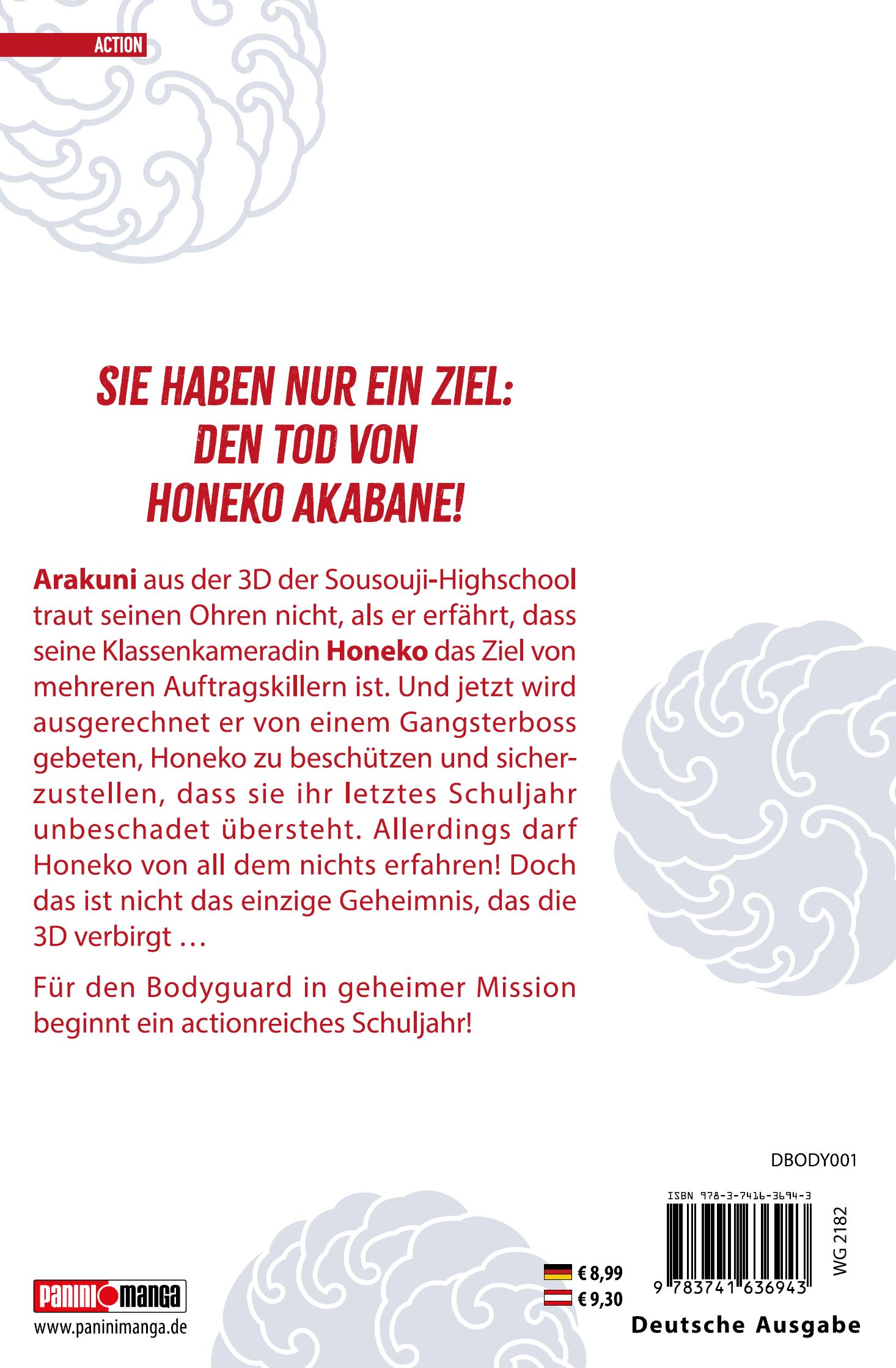 Honeko Akabanes Bodyguard vereint spannende Abenteuer, witzige Situationen und herzerwärmende Momente zu einem grandiosen Gesamtpaket!Das erwartet dich in Band 1:Sie haben nur ein Ziel: Den Tod von Honeko Akabane! Arakuni aus der 3D der Sousouji-Highschool traut seinen Ohren nicht, als er erfährt, dass seine Klassenkameradin Honeko das Ziel von mehreren Auftragskillern ist. Und jetzt wird ausgerechnet er von einem Gangsterboss gebeten, Honeko zu beschützen und sicherzustellen, dass sie ihr letztes Schuljahr unbeschadet übersteht. Allerdings darf Honeko von all dem nichts erfahren! Doch das ist nicht das einzige Geheimnis, das die 3D verbirgt …Für den Bodyguard in geheimer Mission beginnt ein actionreiches Schuljahr!Für Fans von Action-, Abenteur-, Romance- und Comedymanga wie Assassination Classroom und Kaguya-sama: Love is war!
