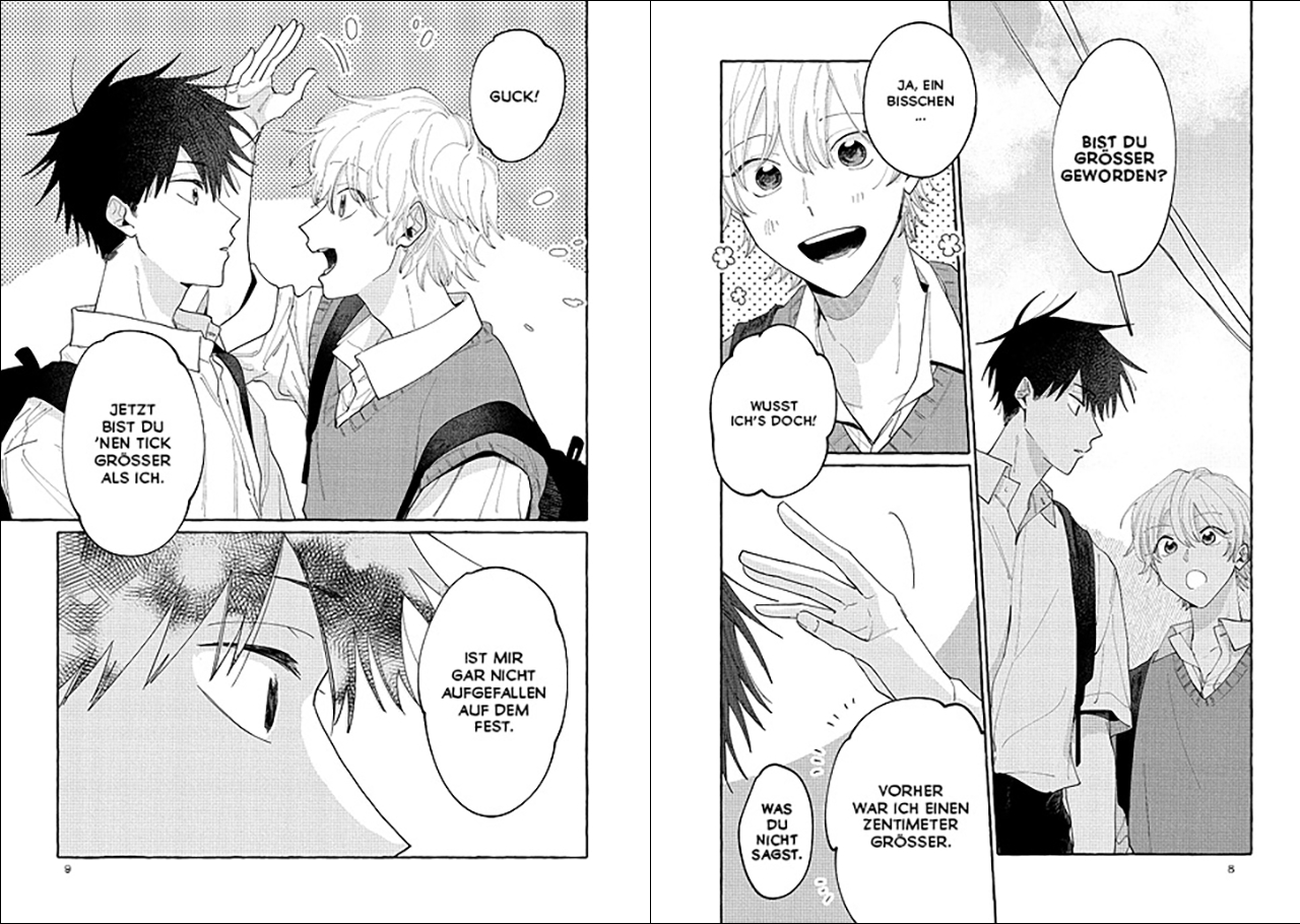Ich könnte versuchen, mich in dich zu verlieben ist eine sanfte Boys-Love-Romanze , die sich ausgiebig Zeit für das Storytelling und die Charakterentwicklung nimmt. Die Geschichte eignet sich sehr gut für Genre-Einsteiger*innen ab 14 Jahrensowie für Fans von Sasaki & Miyano, Ein Fremder im Frühlingswind oder Kirschblüten nach dem Winter.