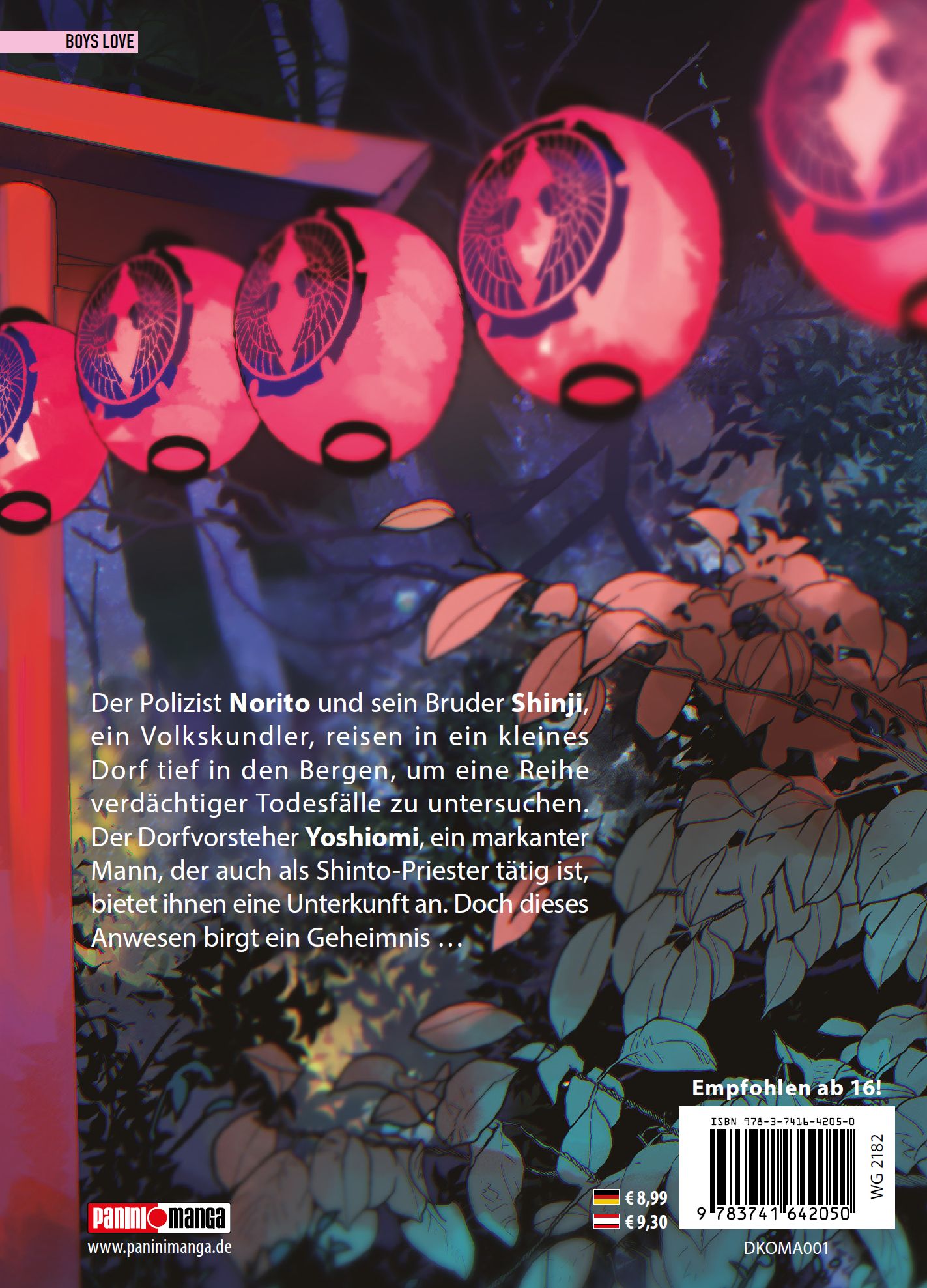 Erlebe in diesem mitreißenden Krimi-Manga, wie sich zwei Männer durch einen mysteriöse Morde näherkommen. Das erwartet dich in Band 1: Der Polizist Norito und sein Bruder Shinji, ein Volkskundler, reisen in ein kleines Dorf tief in den Bergen, um eine Reihe verdächtiger Todesfälle zu untersuchen. Der Dorfvorsteher Yoshiomi, ein markanter Mann, der auch als Shinto-Priester tätig ist, bietet ihnen eine Unterkunft an. Doch dieses Anwesen birgt ein Geheimnis … Für Fans von Mystery-, Krimi- und Boys-Love-Manga!