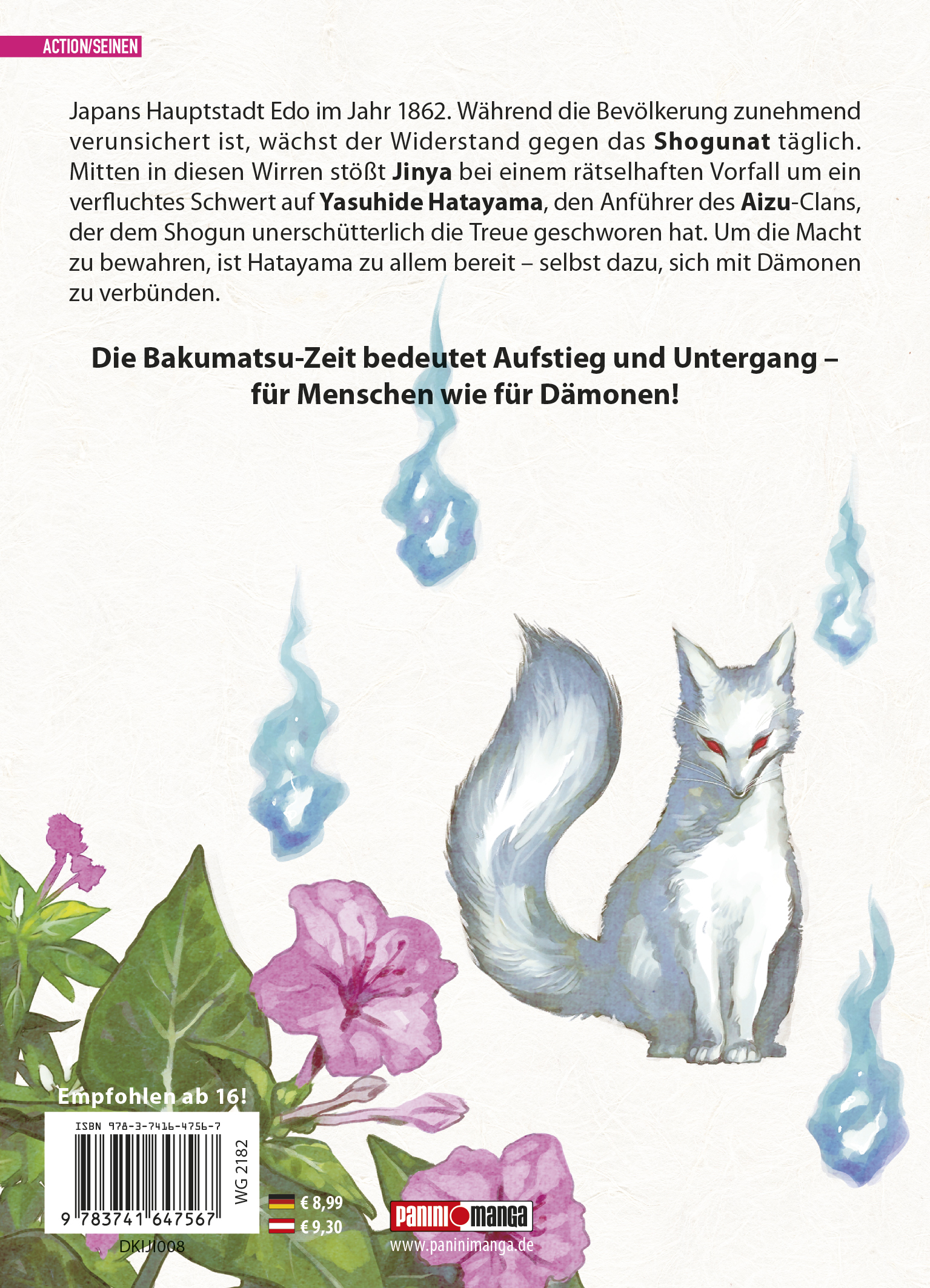 KIJIN GENTOSHO ist ein spannender und actiongeladener Samurai-Manga mit ungeahnten Twists! Das erwartet dich in Band 8: Japans Hauptstadt Edo im Jahr 1862. Während die Bevölkerung zunehmend verunsichert ist, wächst der Widerstand gegen das Shogunat täglich. Mitten in diesen Wirren stößt Jinya bei einem rätselhaften Vorfall um ein verfluchtes Schwert auf Yasuhide Hatayama, den Anführer des Aizu-Clans, der dem Shogun unerschütterlich die Treue geschworen hat. Um die Macht zu bewahren, ist Hatayama zu allem bereit – selbst dazu, sich mit Dämonen zu verbünden. Die Bakumatsu-Zeit bedeutet Aufstieg und Untergang – für Menschen wie für Dämonen!Für Fans von Action-, Abenteuer-, Mystery- und Samurai-Manga wie Kimetsu no Yaiba – Demon Slayer!