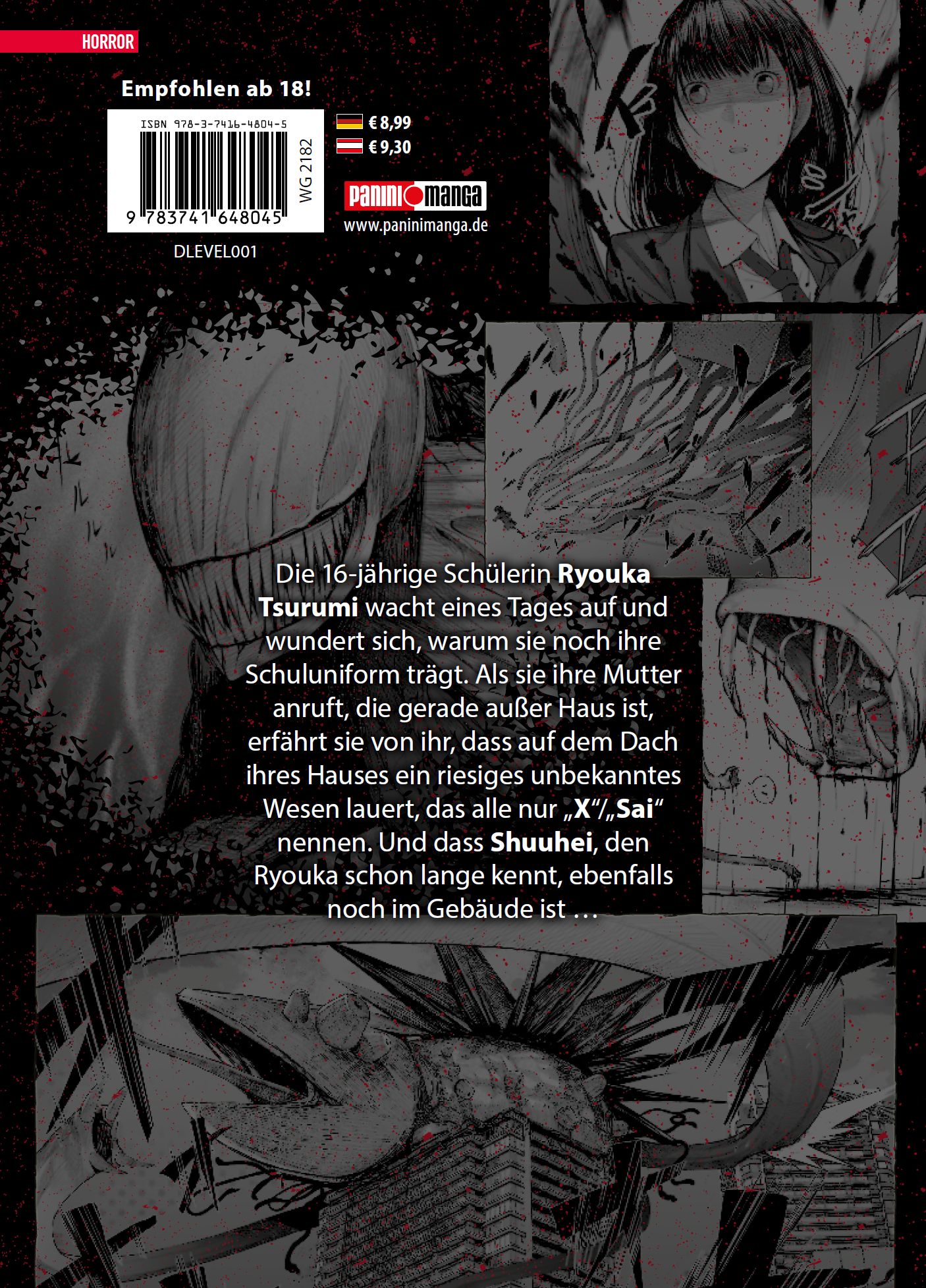 Ein packender Mystery-Horror über Zeit und den unerschütterlichen Willen, nicht aufzugeben. Die 16-jährige Schülerin Ryouka Tsurumi wacht eines Tages auf und wundert sich, warum sie noch ihre Schuluniform trägt. Als sie ihre Mutter anruft, die gerade außer Haus ist, erfährt sie von ihr, dass auf dem Dach ihres Hauses ein riesiges unbekanntes Wesen lauert, das alle nur „X“/„Sai“ nennen. Und dass Shuuhei, den Ryouka schon lange kennt, ebenfalls noch im Gebäude ist …Empfohlen ab 18!