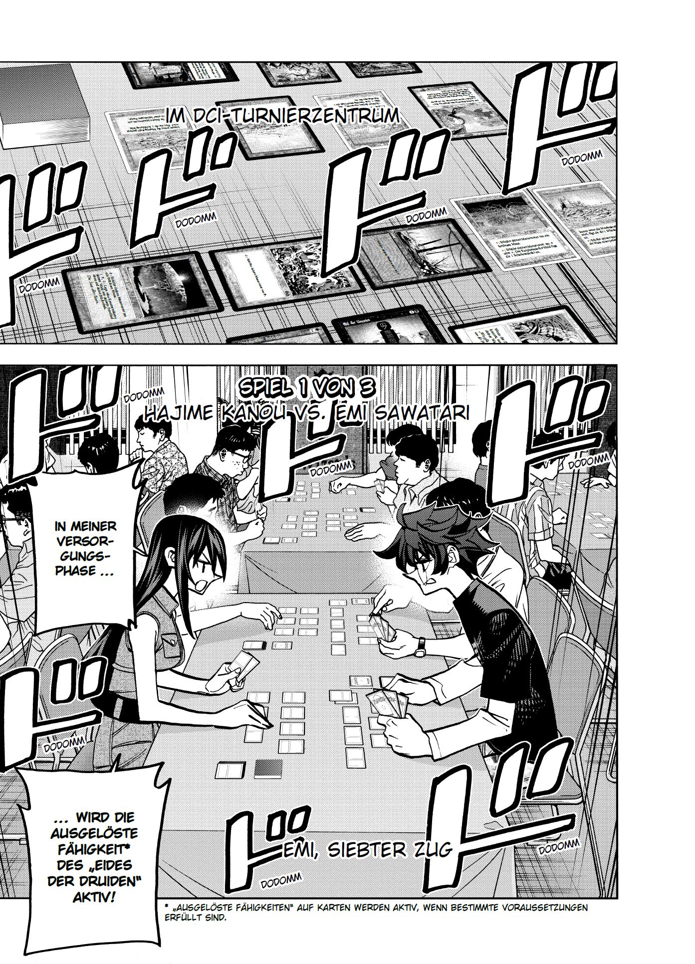 MAGIC: THE GATHERING, eines der weltweit beliebtesten Trading Card Games, findet in dieser actionreichen RomCom über zwei Kartenspiel-Rivalen, die Freunde werden, sein neues Zuhause! Hajime und die hübsche Sawatari sind seit der Grundschule Rivalen. Doch als Hajime entdeckt, dass Sawatari auch seine Leidenschaft für das Kartenspiel “Magic: The Gathering” teilt, beginnt sich ihre Beziehung zu verändern. Er fordert sie zu einem entscheidenden Duell heraus, bei dem er alles aufs Spiel setzt. Werden sie ihre Differenzen überwinden und ihre Gefühle füreinander entdecken? Finde es heraus in dieser lustigen und herzerwärmenden Geschichte über Liebe, Freundschaft und "Magic".Das erwartet dich in Band 9: Emi und Hajime stehen sich bei der Kantou-Regionalmeisterschaft nach langer Zeit wieder im Rahmen eines Turniers gegenüber. Doch Emi hat ihrer Mutter versprochen, nach dem Turnier mit dem „Magic“-spielen aufzuhören. Heißt das auch, dass sie den Kontakt zu Hajime abbrechen wird?Für Fans von Action- und RomCom-Manga sowie vom Pokémon-Kartenspiel und Yu-Gi-Oh!