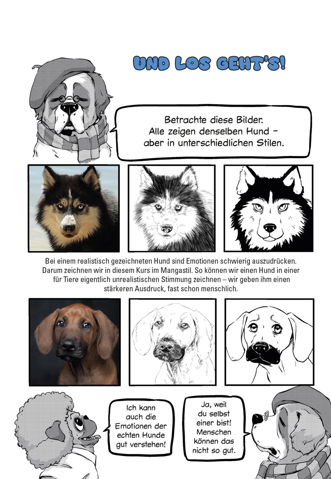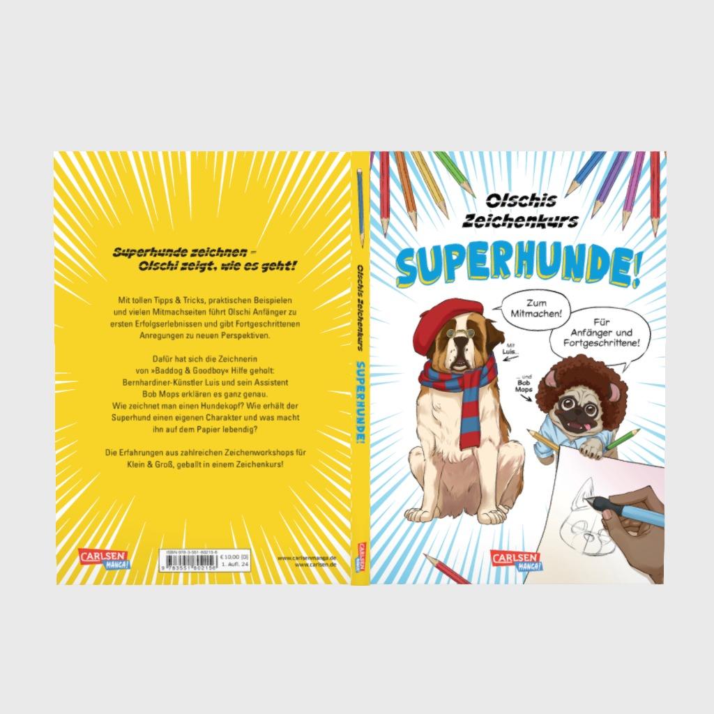 Mit ihren Live-Workshops gibt die Zeichnerin Olschi auf Messen und im Handel seit Erscheinen ihres Mangas »Baddog & Goodboy« Groß und Klein tolle Tipps zum Zeichnen von Hunden. Jetzt erscheint mit ihrem ersten Zeichenkurs »Superhunde!« eine Anleitung zum Mitmachen in Buchform. Der Bernhardiner-Künstler Luis und sein Assistent Bob Mops zeigen, wie es geht: Wie zeichnet man einen Hundekopf? Wie erhält der Hund einen eigenen Charakter und was macht ihn auf dem Papier lebendig? Mit lustigen Tricks und praktischen Beispielen führt Olschi sowohl Anfänger zu ersten Erfolgen als auch Fortgeschrittene zu neuen Perspektiven.