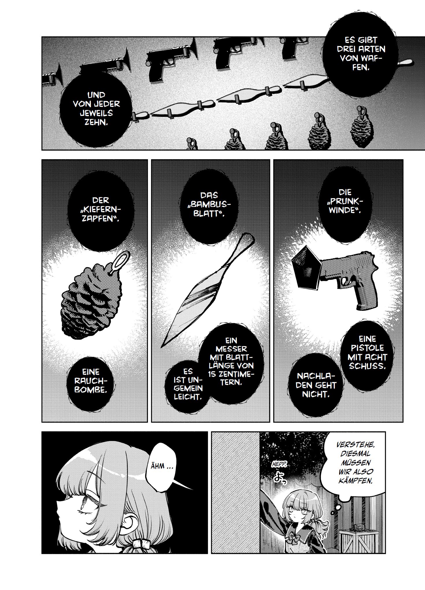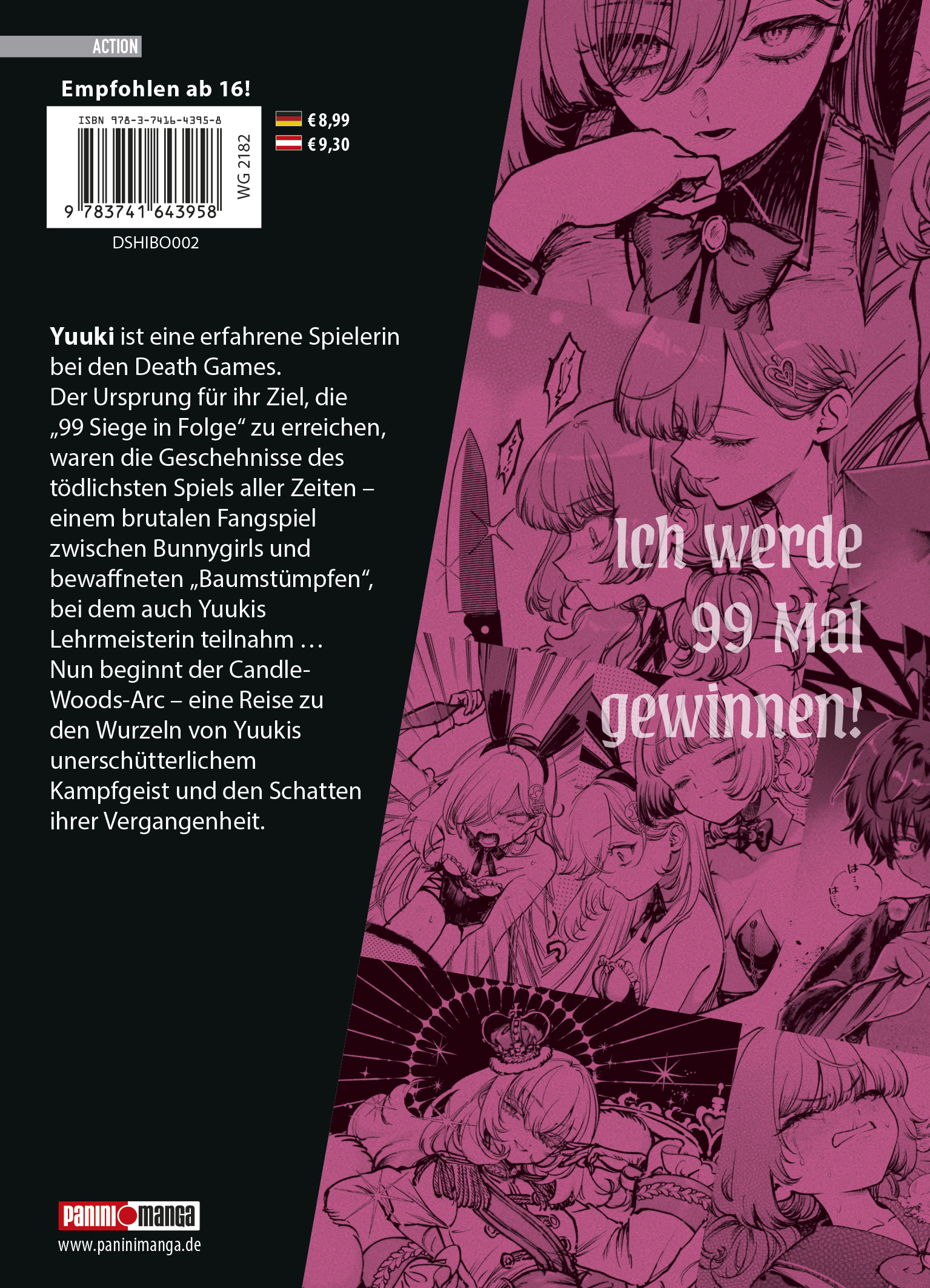 Grausame Spiele mit süßen und tödlichen Mädchen!Yuuki erwacht in einem unbekannten Herrenhaus und trägt ein Dienstmädchen-Outfit. Im Speisesaal trifft sie auf fünf weitere Mädchen, die alle genau das gleiche Outfit tragen. Schon bald erfahren sie, dass das Herrenhaus voller tödlicher Waffen und Fallen ist und dass sie nur entkommen können, indem sie ein grausames Spiel spielen. Während die anderen Mädchen vor Angst erblassen, bleibt Yuuki ruhig. Denn dies ist nicht ihr erstes tödliches Spiel – Yuuki ist eine professionelle Spielerin, die von den Preisgeldern brutaler Wettkämpfe lebt und fest entschlossen ist, auch dieses Mal zu gewinnen. Das erwartet dich in Band 2: Yuuki ist eine erfahrene Spielerin bei den Death Games. Der Ursprung für ihr Ziel, die „99 Siege in Folge“ zu erreichen, waren die Geschehnisse des tödlichsten Spiels aller Zeiten – einem brutalen Fangspiel zwischen Bunnygirls und bewaffneten „Baumstümpfen“, bei dem auch Yuukis Lehrmeisterin teilnahm … Nun beginnt der Candle-Woods-Arc – eine Reise zu den Wurzeln von Yuukis unerschütterlichem Kampfgeist und den Schatten ihrer Vergangenheit.Für Fans von süßen und hübschen Mädchen, Squid Game, Ousama Game, SAW und Battle Royale!