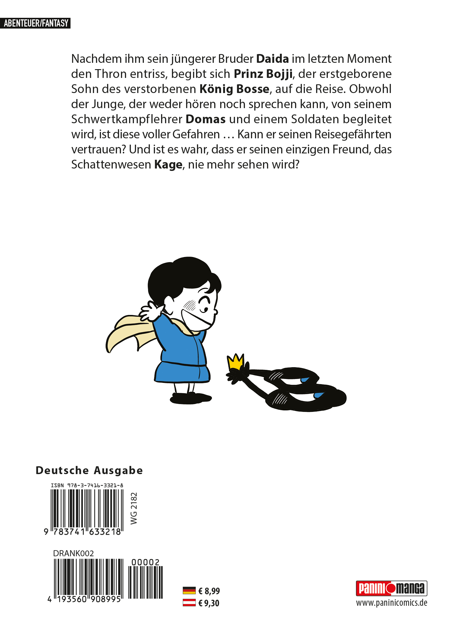 Die Vorlage zum Anime-Hit auf Crunchyroll! In RANKING OF KINGS geht es um Prinz Bojji, der zwar gehörlos und schwach ist, aber trotzdem davon träumt, der größte König der Welt zu werden. Er freundet sich mit dem Schattenwesen Kage an, das ihm zur Seite steht. Der Manga ist eine fesselnde und emotionale Mischung aus Fantasy und Action.Das erwartet dich in Band 2:Nachdem ihm sein jüngerer Bruder Daida im letzten Moment den Thron entriss, begibt sich Prinz Bojji, der erstgeborene Sohn des verstorbenen König Bosse, auf die Reise. Obwohl der Junge, der weder hören noch sprechen kann, von seinem Schwertkampflehrer Domas und einem Soldaten begleitet wird, ist diese voller Gefahren … Kann er seinen Reisegefährten vertrauen? Und ist es wahr, dass er seinen einzigen Freund, das Schattenwesen Kage, nie mehr sehen wird?Für Fans von Action-, Fantasy- und Abenteuer-Manga!