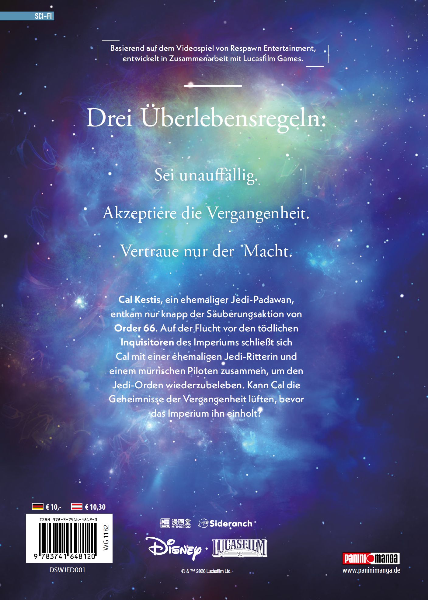 Die Jedi sind gefallen und das Imperium herrscht über die Galaxis. Doch ein Padawan hat überlebt und ist ein letzter Funke der Hoffnung. Das erwartet dich in Band 1: Drei Überlebensregeln:Sei unauffällig.Akzeptiere die Vergangenheit.Vertraue nur der Macht.Cal Kestis, ein ehemaliger Jedi-Padawan, entkam nur knapp der Säuberungsaktion von Order 66. Auf der Flucht vor den tödlichen Inquisitoren des Imperiums schließt sich Cal mit einer ehemaligen Jedi-Ritterin und einem mürrischen Piloten zusammen, um den Jedi-Orden wiederzubeleben. Kann Cal die Geheimnisse der Vergangenheit lüften, bevor das Imperium ihn einholt?Ein episches Abenteuer in einer Galaxis voller Dunkelheit, Hoffnung und Macht.Basierend auf dem Videospiel von Respawn Entertainment, entwickelt in Zusammenarbeit mit Lucasfilm Games