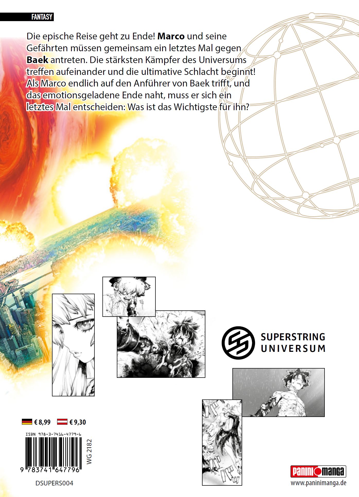 Ein übernatürlicher, hyperdimensionaler Fantasy-Sci-Fi-Action-Manga von Youn In-Wan (u. a. Shin Angyo Onshi) und Boichi (u. a. Dr. Stone, Wallman, Sun-Ken Rock)! Als ältester Sohn der Familie Polo gibt Marco alles, um für seine jüngeren Geschwister zu sorgen. Nach einem merkwürdigen Schiffsunglück findet er sich in Asien wieder, einem Ort, vor dem er gewarnt wurde. Bald wird ihm klar, dass er an der Schwelle zu einer unerwarteten Reise steht, an deren Ende er vor einer Frage steht, auf die es keine richtige Antwort gibt … Das erwartet dich in Band 4: Die epische Reise geht zu Ende! Marco und seine Gefährten müssen gemeinsam ein letztes Mal gegen Baek antreten. Die stärksten Kämpfer des Universums treffen aufeinander und die ultimative Schlacht beginnt! Als Marco endlich auf den Anführer von Baek trifft, und das emotionsgeladene Ende naht, muss er sich ein letztes Mal entscheiden: Was ist das Wichtigste für ihn?ABSCHLUSSBAND