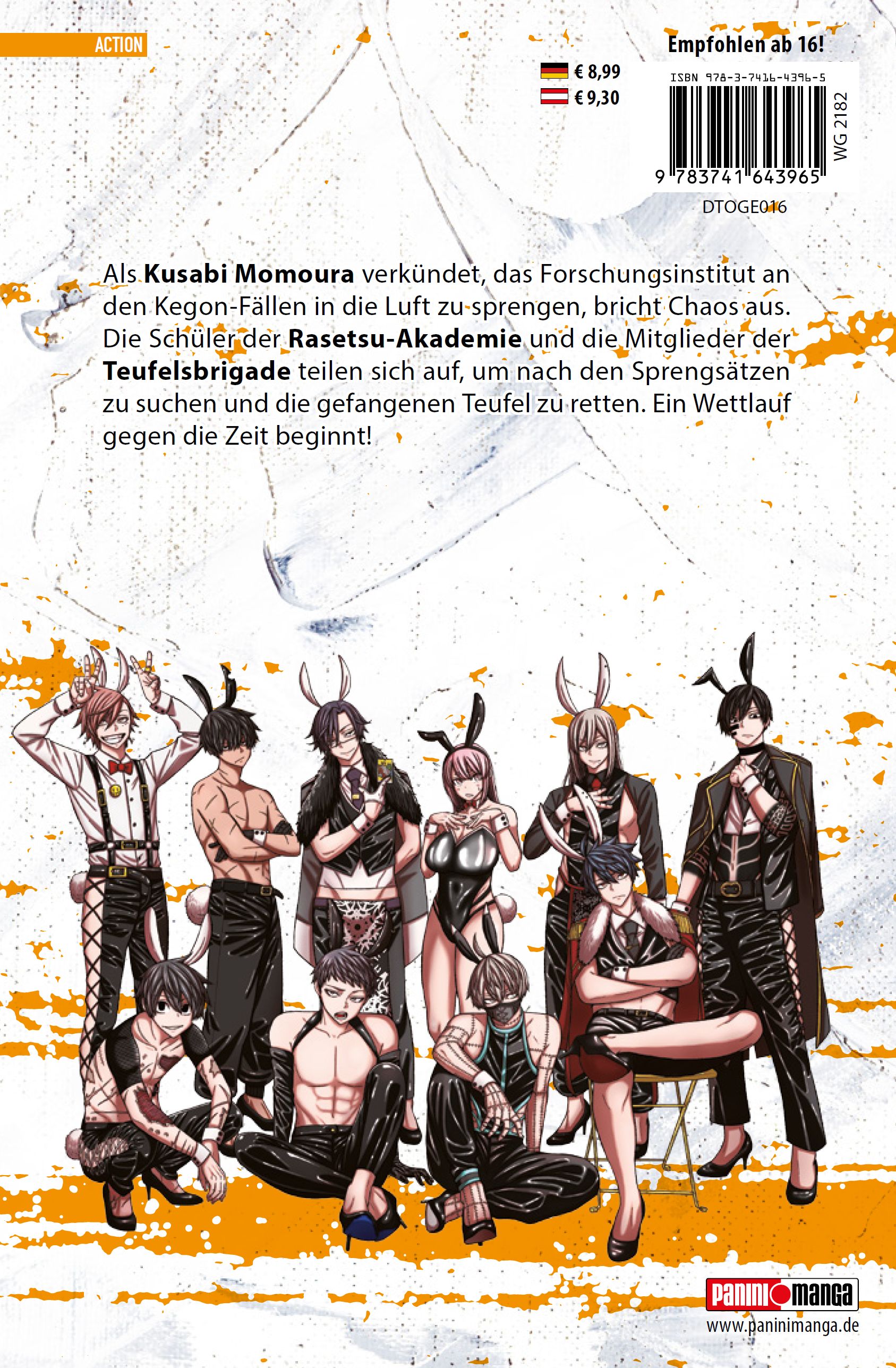 TOGEN ANKI ist der neue Actionkracher – bald auch mit Anime! Folge den Abenteuern von Shiki, einem jungen Waffennarr mit teuflischem Blut in seinen Adern, und erlebe seinen Kampf gegen die Momotaro, eine Organisation, die alle Teufel vernichten will. Das erwartet dich in Band 16: Als Kusabi Momoura verkündet, das Forschungsinstituts an den Kegon-fällen in die Luft zu sprengen, bricht Chaos aus. Die Schüler der Rasetsu-Akademie und die Mitglieder der Teufelsbrigade teilen sich auf, um nach den Sprengsätzen zu suchen und die gefangenen Teufel zu retten. Ein Wettlauf gegen die Zeit beginnt! Für Fans von Action-, Fantasy- und Horror-Manga!