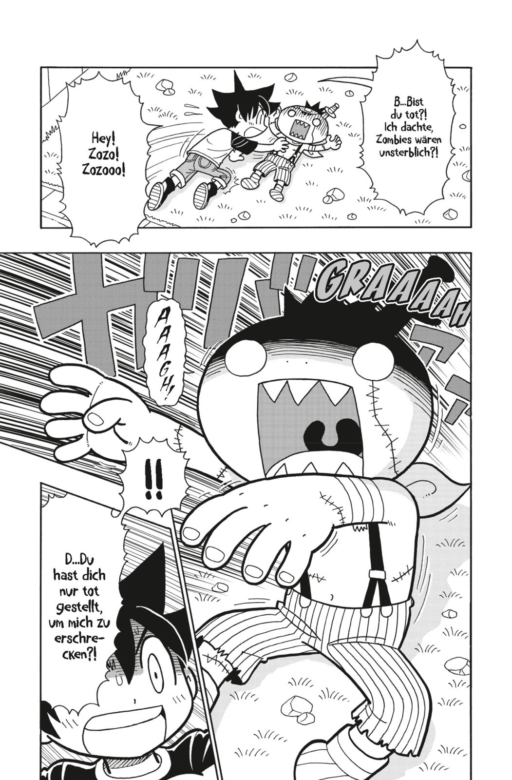 Als der Fünftklässler Isamu von einem kleinen Zombie verfolgt wird, ist die Panik groß! Aber um ehrlich zu sein, etwas ulkig benimmt sich der Untote schon... und er will Isamu auch gar nichts Böses sondern ihm nur sein verlorenes Portemonnaie geben! Überhaupt wäre Zozo gern ein ganz normaler Junge und wünscht sich ein paar Freunde zum Spielen. Dass ihm beim Fußball mal das Bein mit wegfliegt, er seinen Magen als Kopfkissen aufblasen kann oder aus seinem Superhirn unnützes Witzen einfach wegfurzt... Alles kein Ding, denn ZoZo Zombie ist der beste untote Freund, den man haben kann!